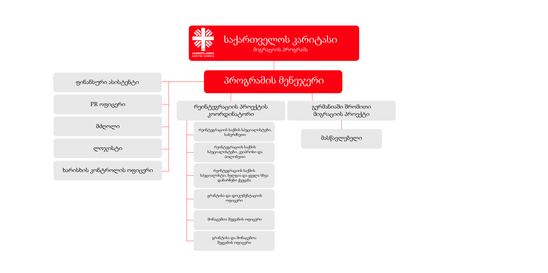 საქართველოს კარიტასის მიგრაციის პროგრამა ეხმარება მიგრაციის პროცესით დაზარალებულ პირებს – მათი სოციოეკონომიკური რეინტეგრაციის ხელშეწყობით, ლეგალური შრომითი მიგრაციის გზების უზრუნველყოფითა და ჰუმანიტარული დახმარებით. ჩვენ ვმუშაობთ იმისთვის, რომ თითოეულ პირს მივაწოდოთ საჭირო ინსტრუმენტები, ცოდნა და მხარდაჭერა ღირსეული და უსაფრთხო ცხოვრების შესაქმნელად – იქნება ეს სამშობლოში დაბრუნება, უცხოეთში მუშაობის სურვილი, თუ კონფლიქტის შედეგად იძულებითი გადაადგილება.